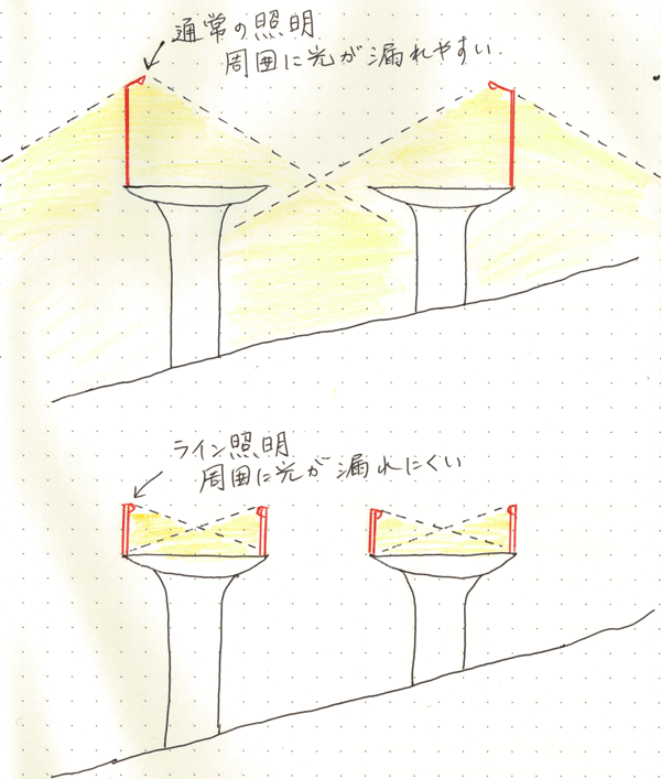 - 「見てください。ちょうどあの辺りから照明が変わっているのが分かりますか?」