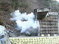 ※部分発破:構造物の安定上重要な部分のみに装薬し、発破する方法。旧不動橋の解体も部分発破を行った。