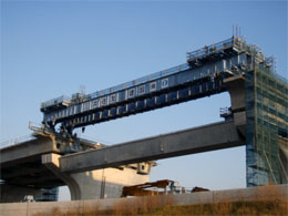 支間や桁高が比較的均一に計画された大規模な都市内高架橋の建設には、これまでは工場製作プレキャストセグメントを1支間ごとに一括して架設するスパンバイスパン(Span by Span)工法に代表されるプレキャスト工法が、高品質化や工期短縮などの点で有利であると考えられてきました。