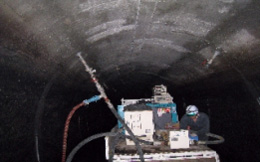 モールグラウト工法は、超長距離圧送による覆工背面空洞充填工法で、坑外から充填材を長距離圧送することで、高効率に覆工背面の空洞を充填することができます。